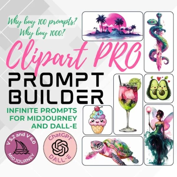 The Clipart Prompt Builder PRO stands out as a tangible example of how AIcreativeTools are revolutionizing the creation of digital assets. As highlighted in the briefing document, this tool is designed to assist users in generating effective prompts for AI image generation models, specifically tailored to creating various clipart styles. Offered in tiered versions – BASIC and PRO – on platforms like Etsy, it embodies the move towards accessible, versatile, and evolving creative solutions. This tool’s capabilities extend beyond simple clipart generation, aiming to cater to diverse creative needs like designing greeting cards, brand kits, and more. With ongoing development signified by updates and learning resources like video guides, the Clipart Prompt Builder PRO positions itself as a dynamic asset for designers, marketers, and anyone looking to craft personalized digital content.